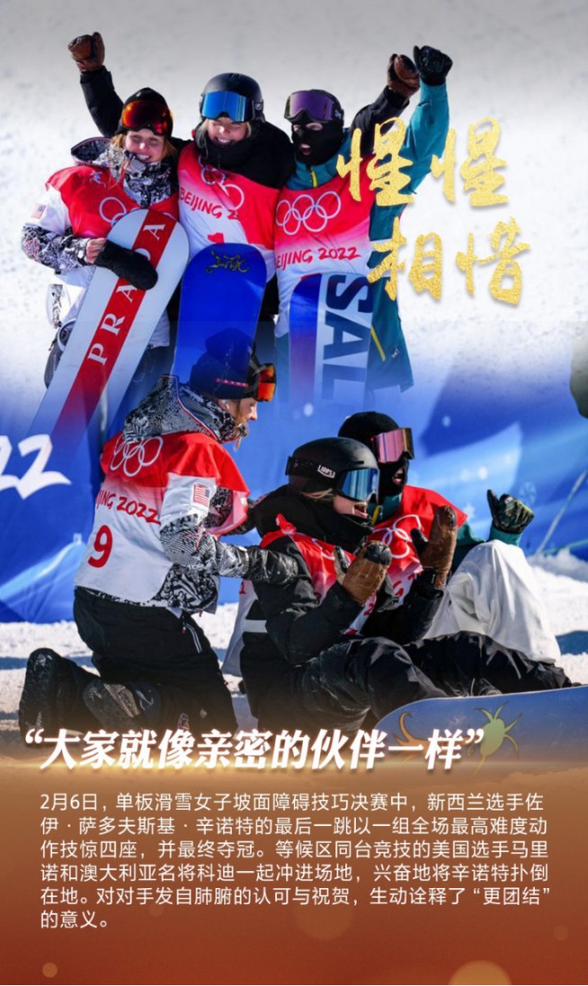 北京冬奥会各项比赛正在火热进行,场上场下那一幕幕温馨动人的场景,是各国运动员和赛事保障人员对“更快、更高、更强——更团结”奥林匹克格言的生动诠释。